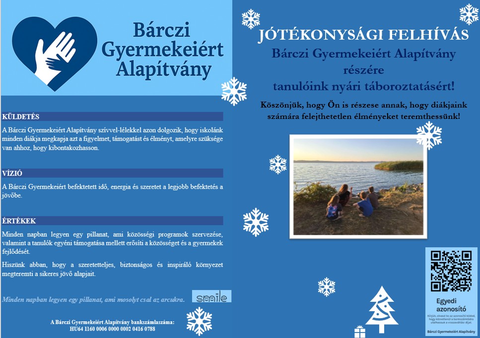 A Bárczi Gyermekeiért Alapítvány szívvel-lélekkel azon dolgozik, hogy iskolánk minden diákja megkapja azt a figyelmet, támogatást és élményt, amelyre szüksége van ahhoz, hogy kibontakozhasson.